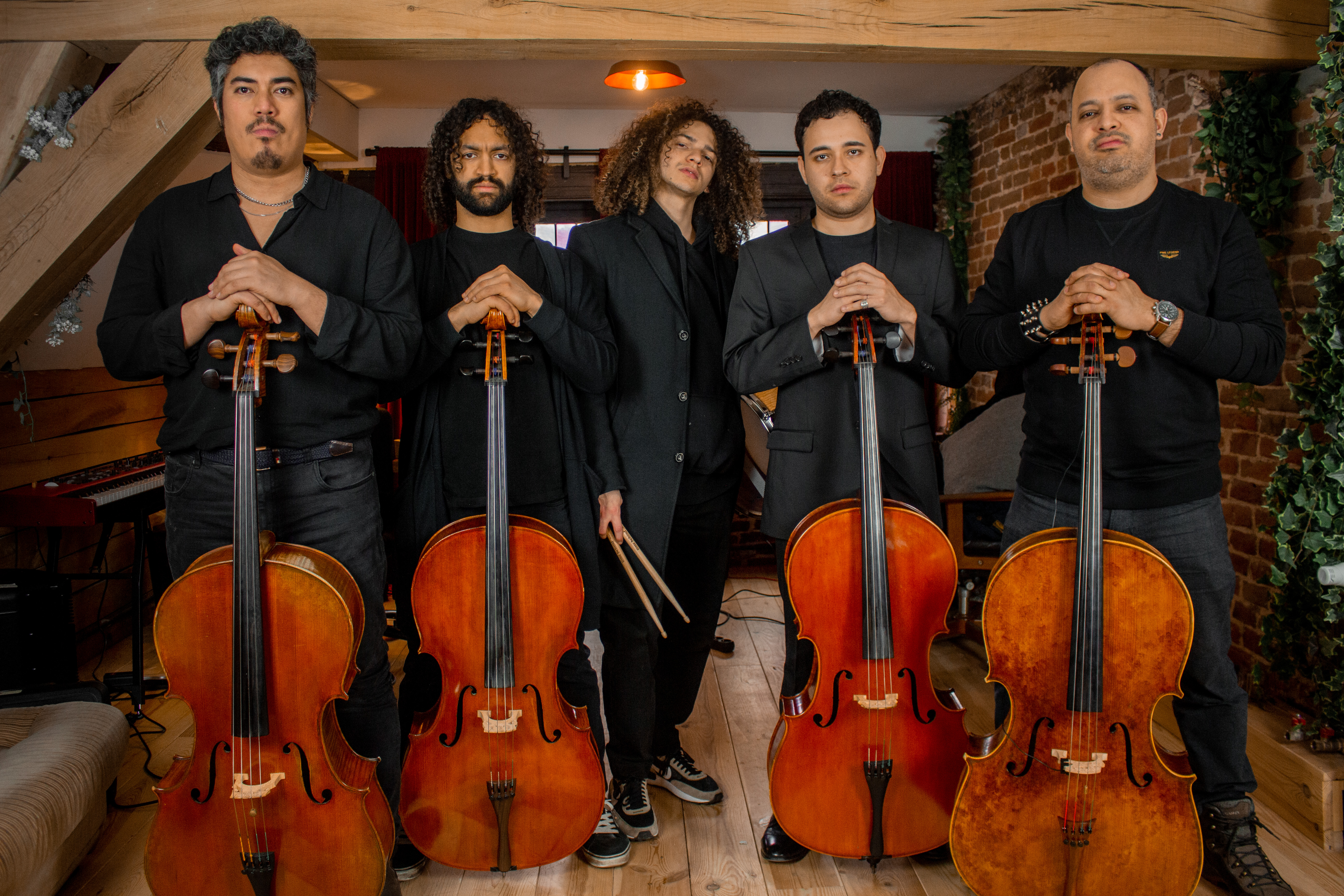 燃烧的弦 Feuerstrings是一支充满激情与创造力的摇滚金属乐队,由四位来自洪都拉斯的大提琴天才和一位技艺高超的鼓手组成。他们的音乐风格独树一帜,将大提琴的深沉与优雅融入摇滚乐的狂放与力量,重塑了如德国战车、林肯公园等经典乐队的热门曲目。Feuerstrings的演出不仅是一次听觉盛宴,更是一场实验性十足的音乐冒险。